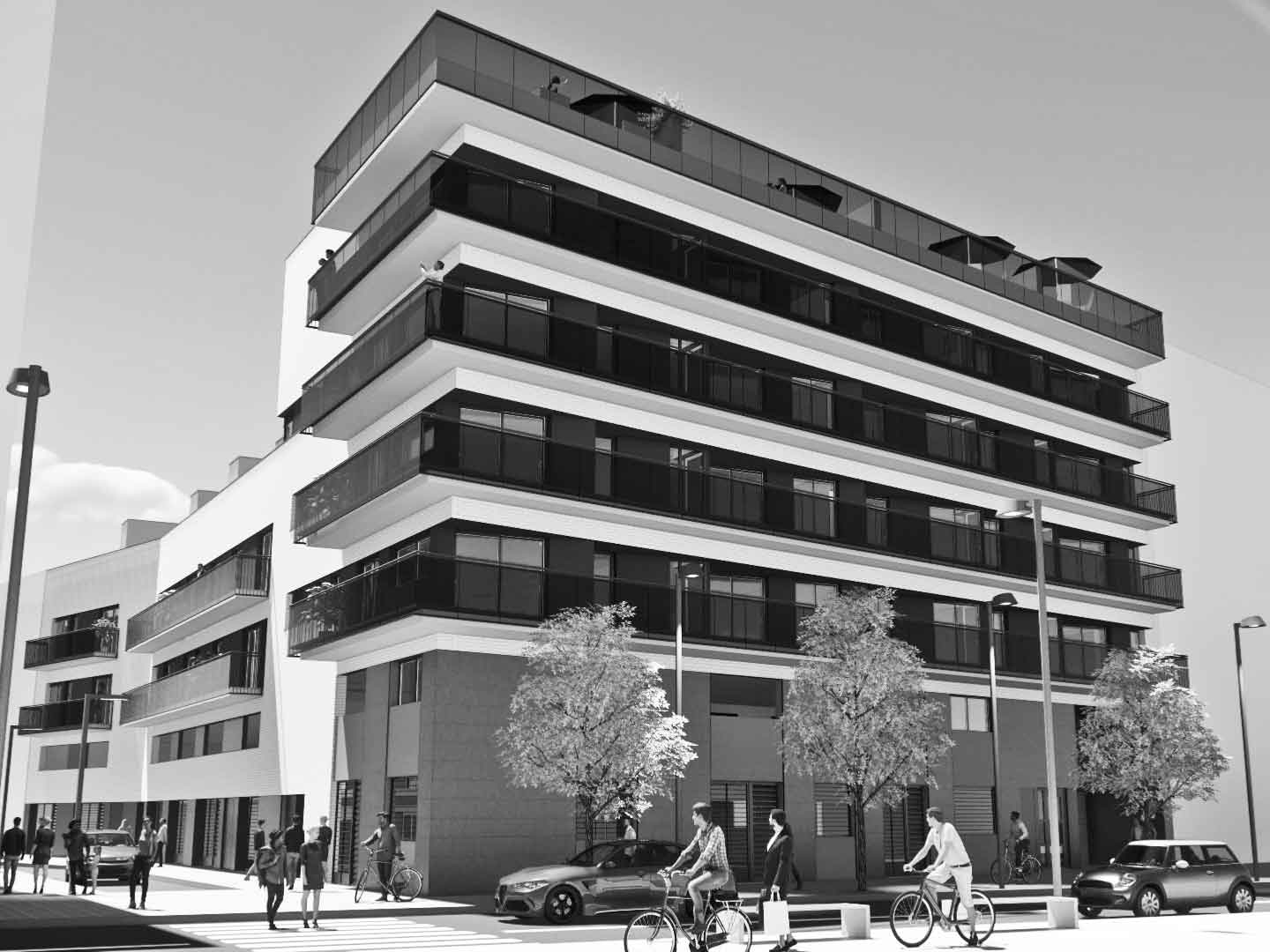 Five projects by the same promoter are currently making up part of the façade of Plaza Pompeu Fabre, in the center of Badalona. Together they add up to a total of 108 homes and 6 commercial premises.